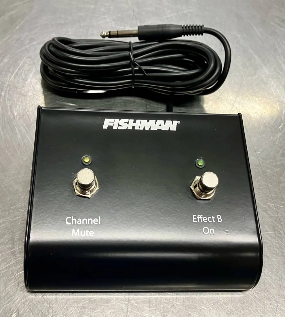This 2 button lighted foot switch works for the Fishman Loudbox Artist and Performer (brown) only. Button 1 mutes both channel outputs, while letting the Aux input continue to function. Button 2 mutes either or both FX B functions, if they have been previously engaged on the amplifier.