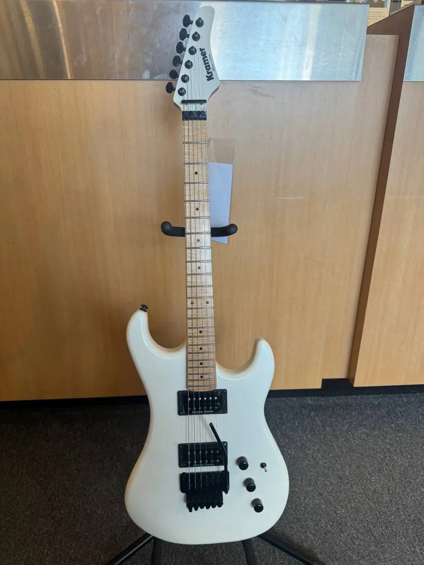 The Pacer is part of Kramer's Original Collection and is a spectacular tribute to the original 1982 Kramer that changed the guitar world forever. Featuring a maple double cutaway offset body, Seymour Duncan™ JB™ & JN humbuckers, a treble-bleed mod to retain shimmering highs at lower volume, and a Floyd Rose™ 1000 Series Tremolo bridge and R2 Locking Nut.