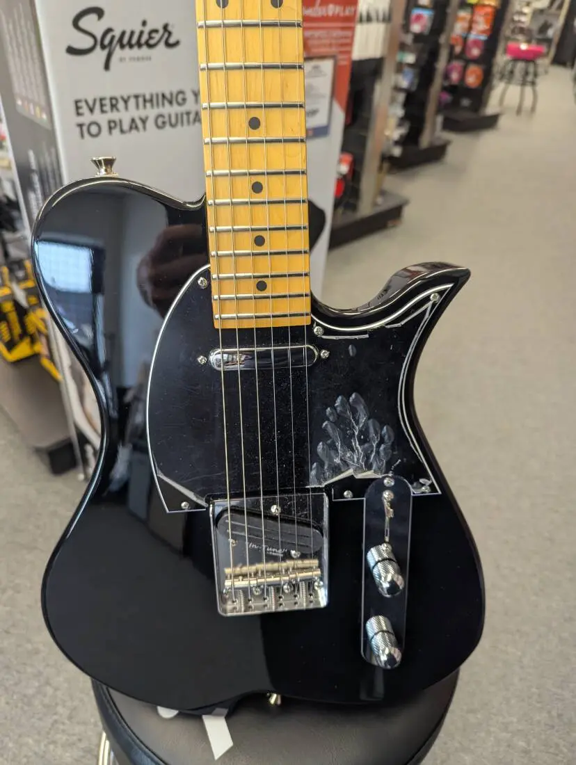 The Vola Vasti MC guitar features a one-piece hard maple neck with rosewood fingerboard options, an ash body, a 25.5-inch scale length, a Graph Tech nut, Gotoh locking tuners, a Gotoh bridge, chrome hardware, nickel frets, Vola Designed pickups, a 3-way selector switch, a 10dB push/pull boost potentiometer, and an included Vola Deluxe gig bag.