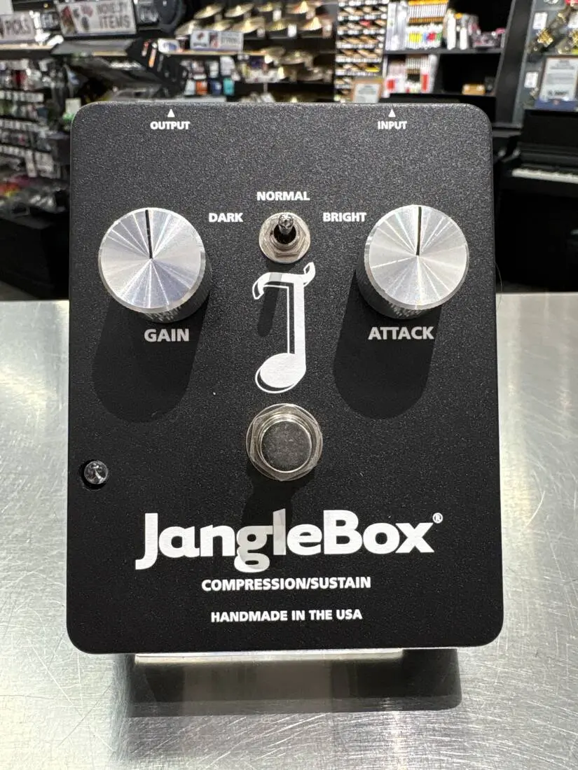 Compact and powerful, the JangleBox is ruggedly constructed for demanding pros and aspiring artists alike. Whether you're looking to get that Beatles/Byrds chime and jangle, never-ending slide sustain, Nashville "squish," or just a big, clean boost, the JangleBox delivers the distinctive compression edge.