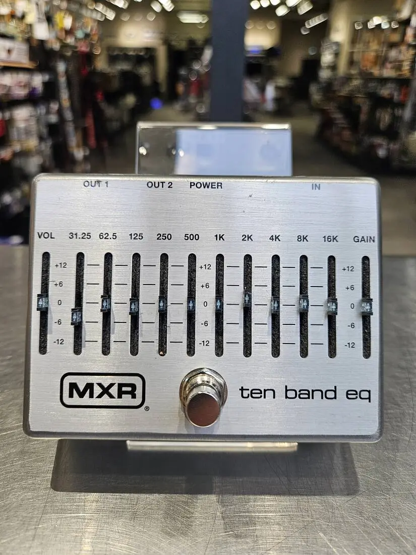The MXR Ten Band EQ lets you tune your bass or guitar rig in seconds, and it's been upgraded with noise-reduction circuitry, true bypass switching, a lightweight aluminum housing, brighter LEDs, and a second output so you can run two separate signal chains. With ten carefully chosen frequencies and both input and output level controls, the Ten Band EQ will let you tune your bass or guitar rig to any room in seconds - create earthshaking low-end; restore punch, level, and treble response to a crowded pedalboard; warm up an amplified acoustic; and much, much more. For ultimate tone-sculpting ability in a bullet-proof enclosure, put the Ten Band EQ on your pedalboard.