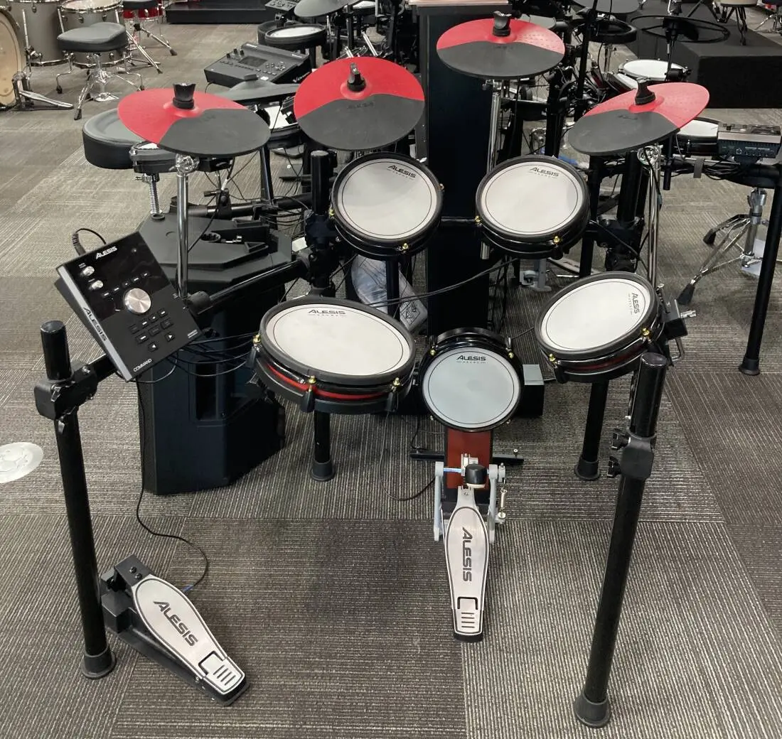 (3) 8" Dual-zone mesh toms, 8" mesh kick pad, 10" dual-zone mesh snare drum, (4) 10" cymbals - crash/ride with choke functionality