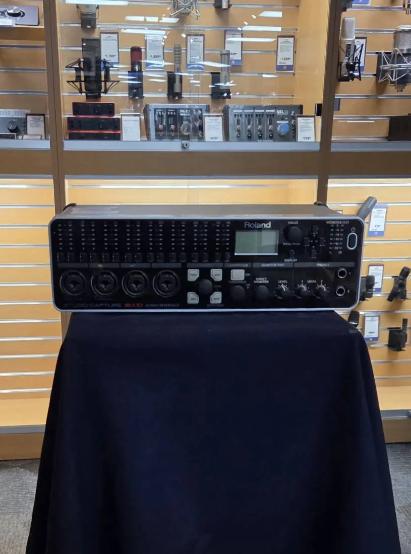 With the new STUDIO-CAPTURE, Roland once again raises the performance standard for computer-based audio production. The latest addition to the acclaimed CAPTURE family boasts 12 premium-grade mic preamps, an industry first for a compact USB audio interface. A total of 16 audio inputs, 10 audio outputs, and MIDI I/O offers massive connectivity for pro-level setups, all in a single, tabletop unit that fits easily into a travel bag. Other top-flight features include 24-bit/192 kHz audio quality, comprehensive front-panel metering, XLR monitor outputs with dedicated level control, dual headphone outputs, rock-solid drivers with VS STREAMING technology, and much more. Durable, portable, and ready to take on large-scale recording projects both in the studio and on the road, STUDIO-CAPTURE stands head and shoulders above all other USB audio interfaces on the market.