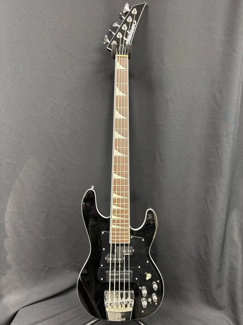 This 35"-scale bass pairs a poplar body with a graphite-reinforced neck-through-body design that generates formidable sustain, while the speed maple neck contour, 12"-16" compound radius bound laurel fingerboard and 24 jumbo frets make for lightning-fast playability. The heart of this five-string beast is a Jackson J-style bridge pickup and Jackson P-style neck pickup, mated to an active 3-band EQ circuit for adding punch, cut, rumble or grunt to your sound. A brand-new stylish chrome Jackson Bass Bacher V hardtail bridge enhances note attack and sustain without altering your carefully crafted tone while the sealed die-cast tuning machines keep the strings in tune, no matter how hard you dig into them.