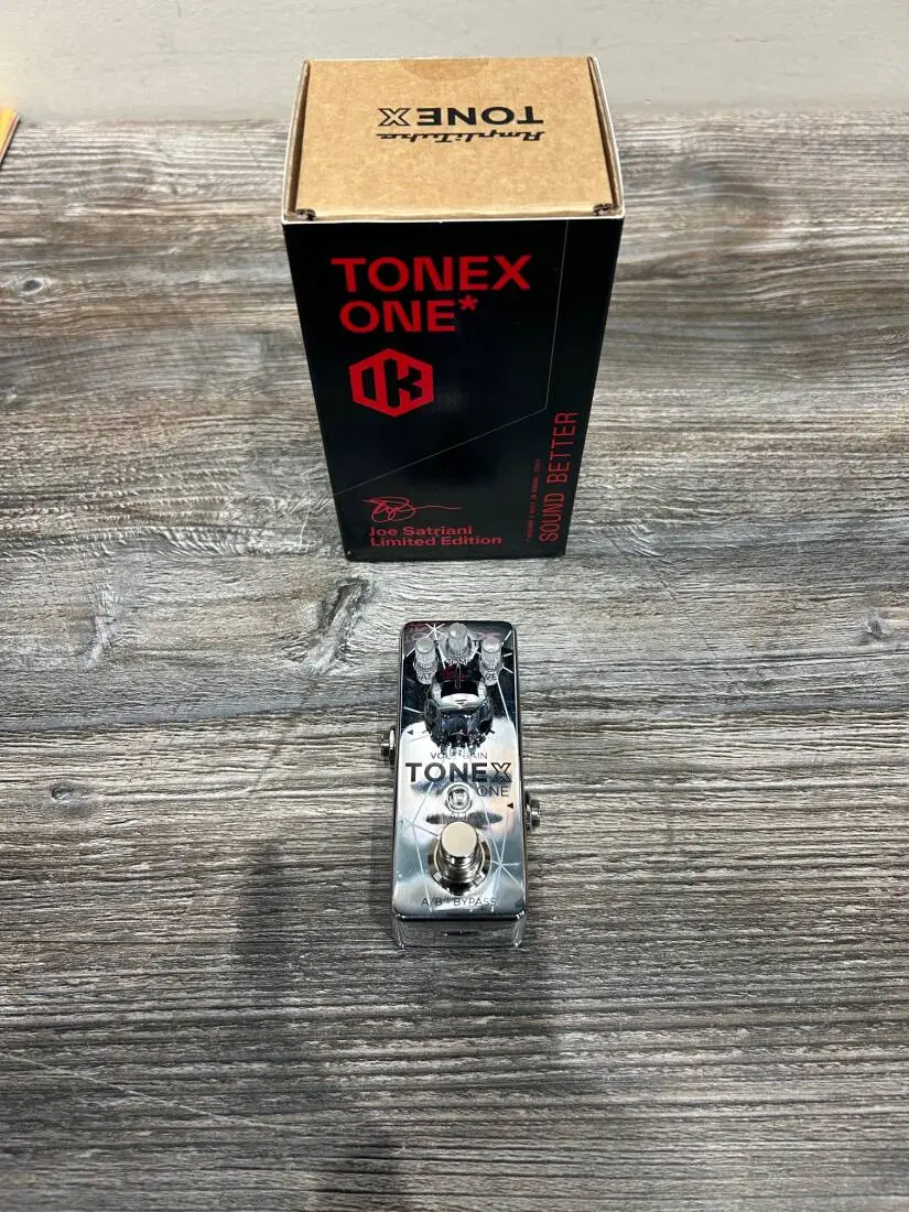 The TONEX ONE Limited Edition Joe Satriani pedal pays tribute to one of the most influential electric guitarists. Handcrafted in Italy with a custom chrome finish, it comes preloaded with 20 presets created by Joe, incorporating his exclusive Amp Vault Premium sound models. This limited edition includes full access to Joe's TONEX Amp Vault collection ($99.99) for use with TONEX software and pedals. This TONEX ONE Limited Edition gives fans the chance to play through Joe's amps in a compact pedal.