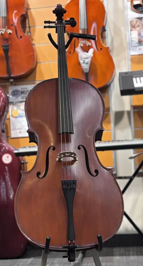 * Semi-hard zipper case with wheels, carbon fibre bow, Wittner tailpiece with 4 intrgral tuners.