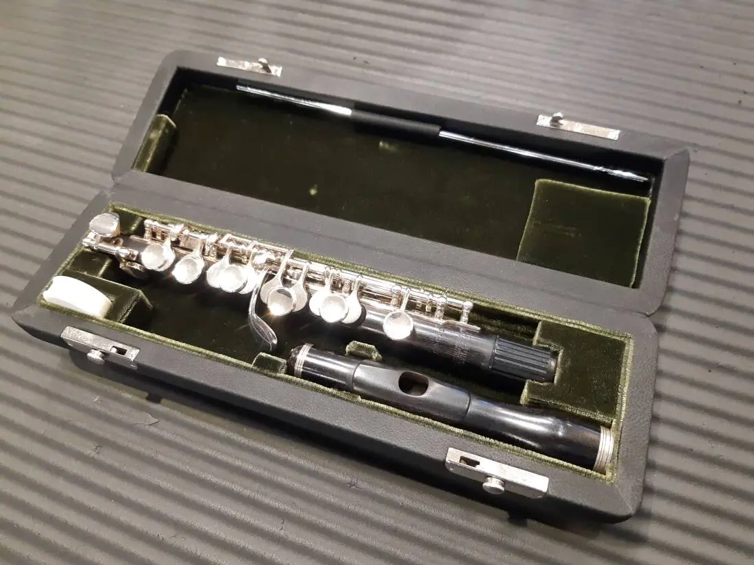 Handmade grenadilla wood piccolo with solid sterling silver key work. Features the high G# mechanism; enhancing the production of this note.