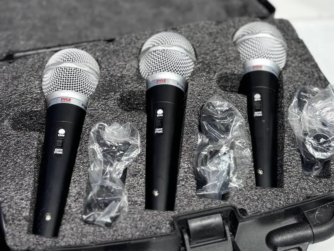The Dynamic Microphone Kit is a professional-grade set featuring three high-performance handheld mics, each designed for clear and powerful vocal reproduction. Equipped with built-in acoustic pop filters and ultra-wide frequency response, these microphones deliver crisp, distortion-free sound, making them ideal for stage performances, live events, and in-studio recordings. Their high signal output ensures vocals cut through the mix with precision, while the rugged zinc alloy construction and steel mesh grille provide durability for long-term use. Each microphone features a unidirectional hyper-cardioid pickup pattern, effectively isolating vocals and minimizing background noise. The kit includes three XLR to 1/4" audio cables, each extending over 26 feet for flexible stage setup. The reinforced sound cartridge enhances clarity, and the built-in ON/OFF switch allows for easy stage control. With a frequency response range of 60Hz-15kHz and an output impedance of 600 ohms, this microphone set is engineered for professional sound quality. Whether for live performances or recording sessions, this kit is a reliable choice for musicians, presenters, and audio professionals seeking superior vocal clarity and seamless operation.