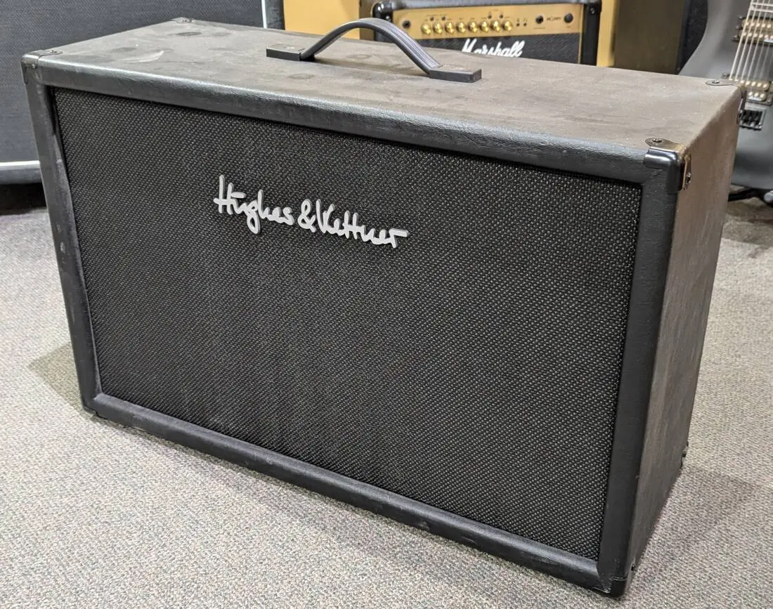 The TubeMeister 212 cab features two 12" Celestion Vintage 30 speakers in a vented housing. Its dimensions are tailored to a TubeMeiser 36 in vertical use, or to Hughes & Kettner's standard size heads in horizontal use. Its a steel fist in a velvet glove!