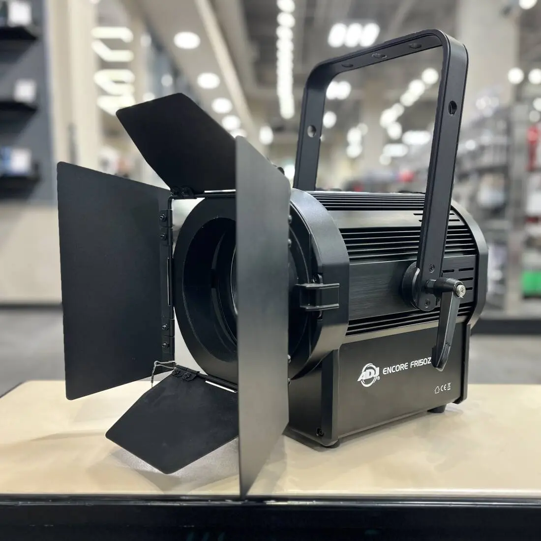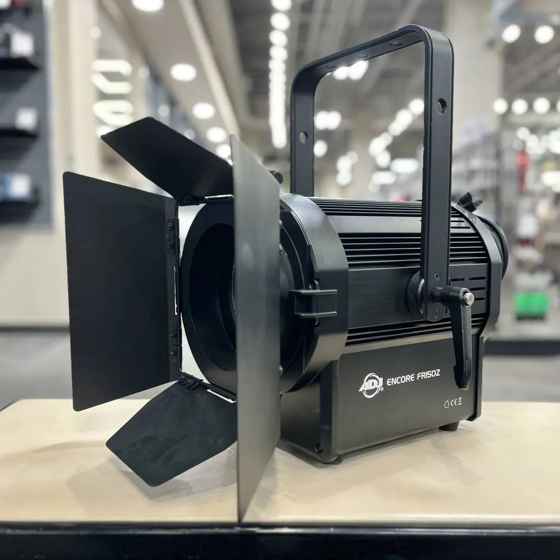 Part of the Encore stage lighting series, the Encore FR150Z lighting fixture is equipped with an 8-inch Fresnel lens and powered by a 130W LED engine. It produces a white wide, soft-edged beam for stage and theatre use at 3000K. It comes with barn doors to adjust the beam dispersion and a manual know to change the beam angle from 8 to 50 degrees.