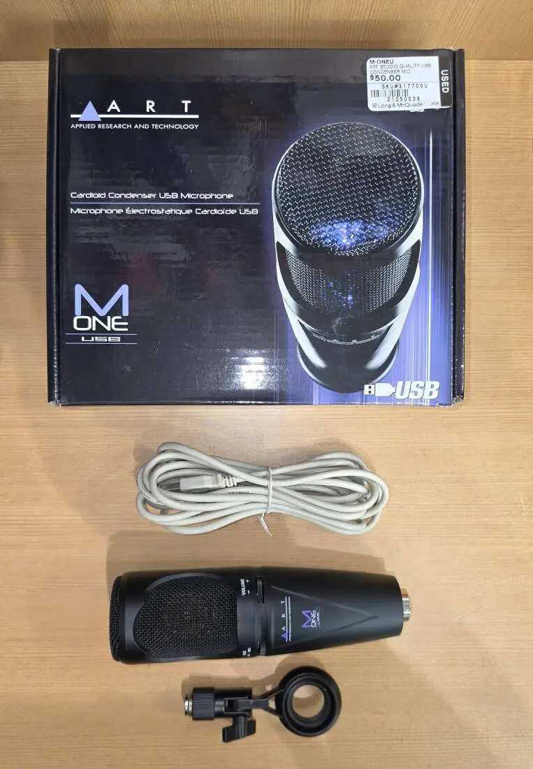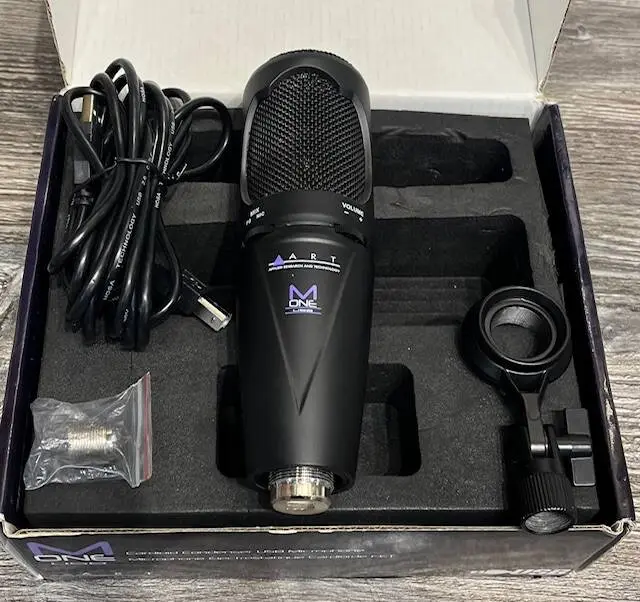 The ART M-One/USB USB delivers studio quality performance in a convenient USB microphone design. Based on the popular ART M-One Studio Condenser, the M-One/USB uses the same low-mass diaphragm and upgraded high quality capsule as the studio version of the microphone, ensuring incredible tone and accurate sonic detail while adding the convenience of a Mac and PC compatible USB 2.0 24bit/ 48kHz output.