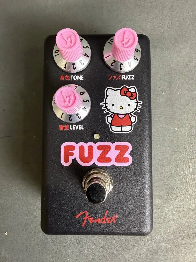 A fun-loving fuzz like no other - the Fender® x Hello Kitty® Fuzz introduces a pop of color and charm to one of the pedal world's most formative effects. Sporting an op amp-based circuit with three simple controls, this pink-clad pedal kicks your guitar into wooly, splattering gain tones with unmistakable character. Use the fuzz knob to cover a wide range of flavors from overdrive-like grit to full on ripping fuzz. Added style points come in the form of a stand-out black finish, pink Fender witch hat knobs, Japanese translated labels and, of course, Hello Kitty herself making an appearance on the front panel. Steal the spotlight with a unique tone and make new friends as they peep your pedal board to catch a look at this one-of-a-kind fuzz pedal.