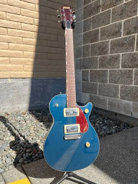 Great used example of this Gretsch Streamliner, with minimul wear and dings, this unit is ready to go! Setup with Ernie Ball 9-42 strings, it is a wicked jangly little guitar!