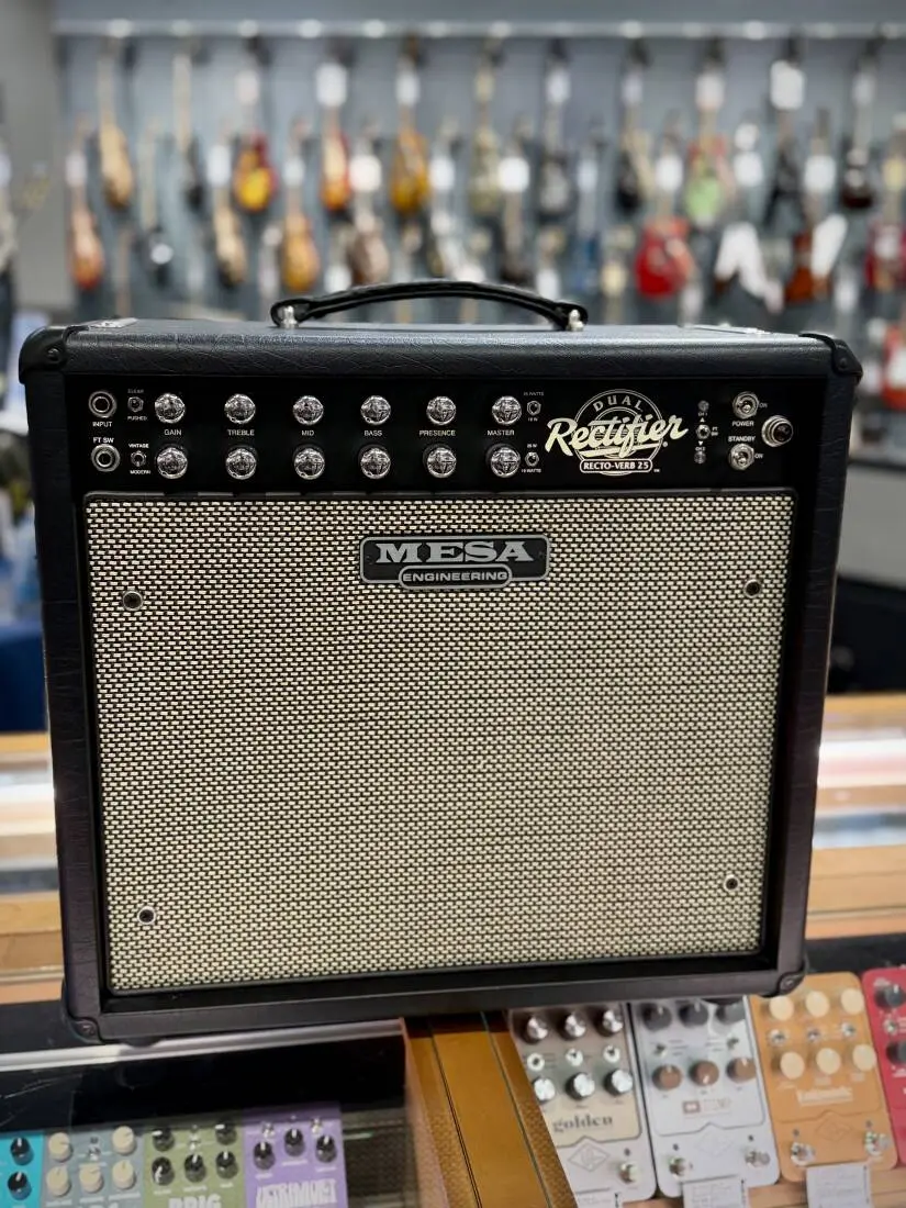 Introducing the Recto-Verb Twenty-Five 1 x 12 Combo, the Reverb-endowed, fraternal-twin of Mesa's little Mini Rectifier lunchbox thats been taking names all over the globe. This even mightier package is slightly larger - long-spring Reverb tank and boast all the same great performance that the Mini Rec is famous for and more. Plus, the classic vinyl-covered birch cabinet provide a wide array of custom finish options to fully personalize them.