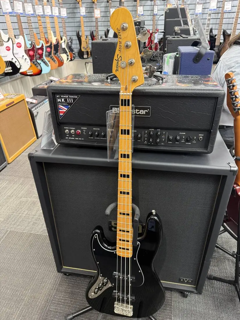 The Classic Vibe '70s Jazz Bass is a nod to the 1970s evolution of the J Bass®, combining the luxurious playability that made it famous with the versatility and massive tone of its dual Fender-designed alnico single-coil pickups. Player-friendly features include a slim and comfortable "C"-shaped neck profile with an easy-playing 9.5"-radius fingerboard and narrow-tall frets, as well as a vintage-style bridge with slotted barrel saddles. This throwback Squier model also features 1970s inspired headstock markings, nickel-plated hardware and a slick vintage-tinted gloss neck finish for an old-school aesthetic vibe.
