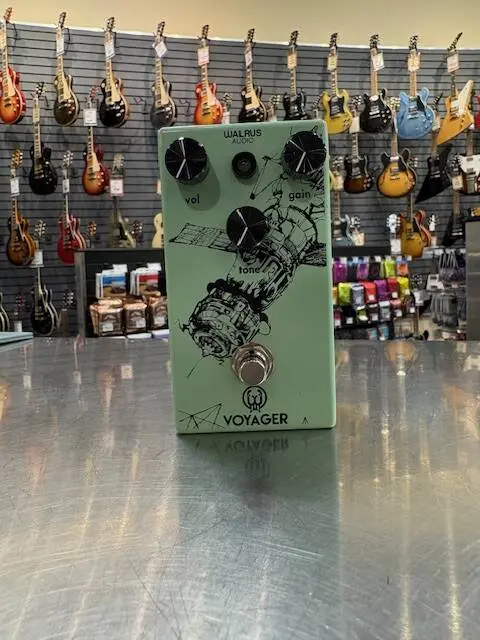 The Voyager is a gain/preamp overdrive that boasts a full spectrum of tone from any setting on its simple set of controls. From its lowest to highest settings, the Voyager provides a uniquely superb amount of clarity to any style of playing. At lower gain settings, it brightens the signal and adds clarity to each note played. With the gain turned up, the Voyager transforms into a thick overdrive, providing depth to chorded playing while retaining the clarity needed to break through on solos. Has True Bypass switching.