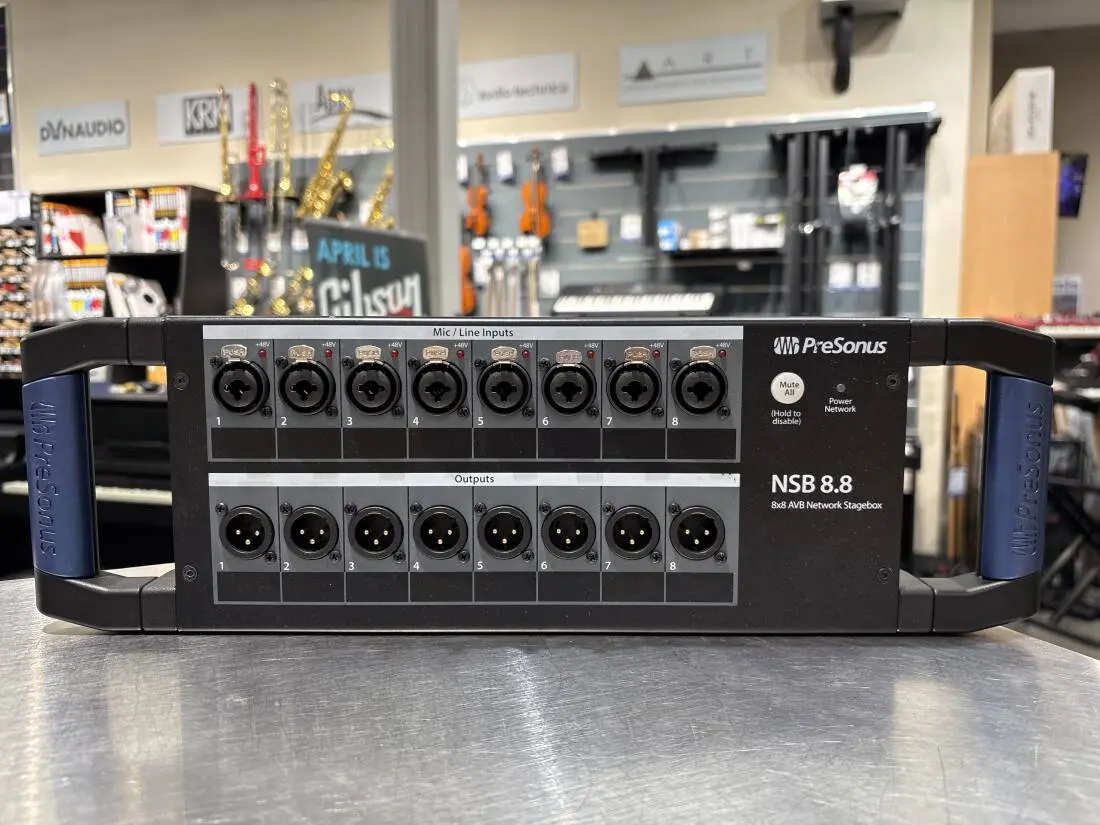 Designed to work seamlessly with PreSonus StudioLive Series III console/recorders, the PreSonus NSB 8.8 is an 8-in, 8-out stage box that sets up quickly and easily to route signals from stage to mixer over an AVB network. With AVB networking, all signals flow through one lightweight CAT5e or CAT6 Ethernet cable, eliminating the need for a heavy, expensive copper snake - and the signal degradation that goes with long analog cable runs. You can even remote control the NSB 8.8's inputs, preamps, and phantom power from your networked Series III console or from free PreSonus UC Surface touch-control software.