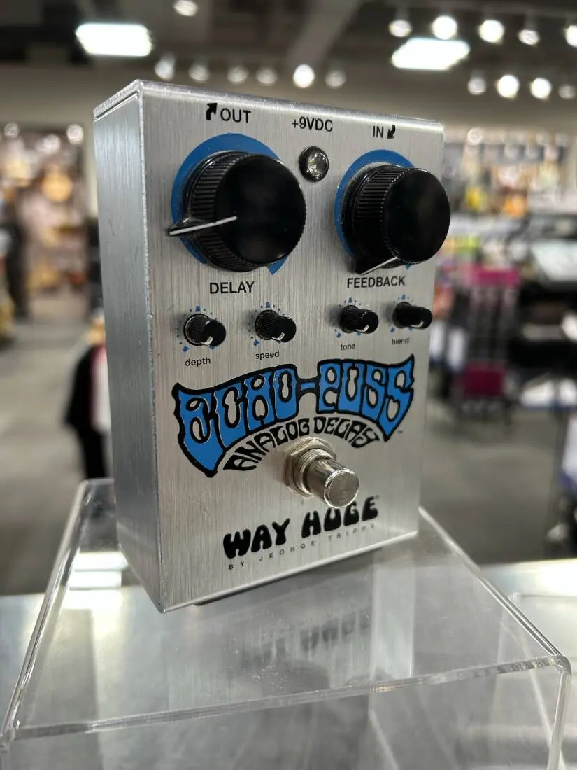 The Way Huge Echo-Puss was designed by delay expert Jeorge Tripps for players who want an organic analog delay pedal that allows them to fine-tune their delay sound with a simple user interface. It serves up 600ms of delay with a pair of gravelly-voiced bucket-brigade chips. Additionally, a fully tweakable LFO modulation circuit allows you to add a liquid texture to the sound of the repeats.