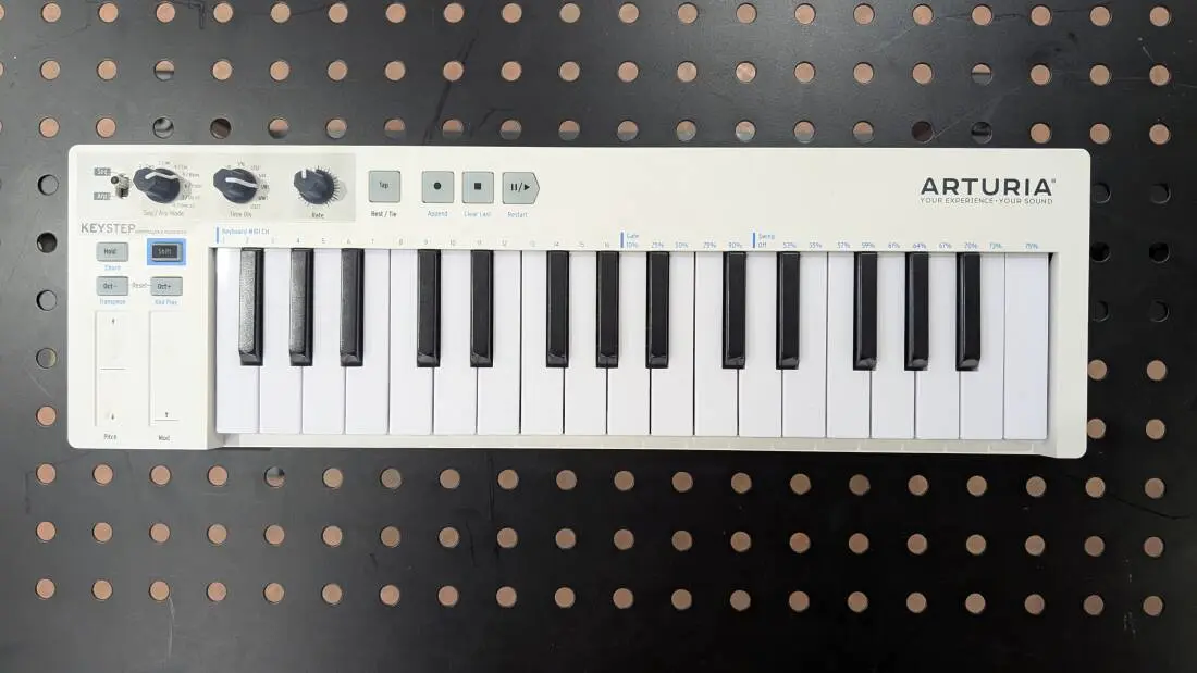 KeyStep is a new breed of portable musical tool combining the functionalities of a keyboard controller with a polyphonic step sequencer to control both analog and digital devices. Designed for the mobile musician, producer, or analog enthusiast, the KeyStep from Arturia is a 32-note, slim keyboard with Polyphonic Step Sequencing, Chord and Arpeggiator modes. Features include the slimkey keybed offering velocity and aftertouch, a new polyphonic step-sequencer with 8 programmable memories that you can recall at the turn of knob, and the arpeggiator mode offering 8 pattern styles. Additionally, the swing and gate length can be set via the keyboard on-the-fly.