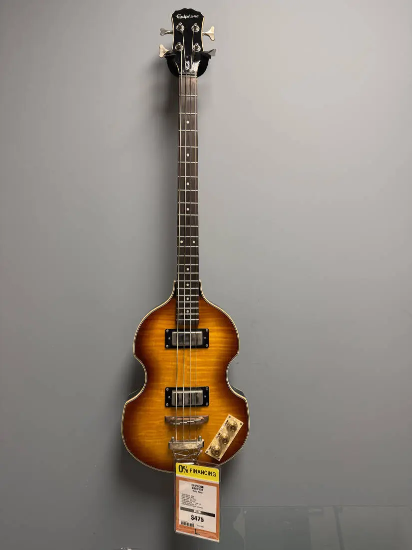 This veteran from the British invasion is back without the vintage price tag! Mod looks and warm, bass tone come together as a result of its hollow laminated Maple body with a short-scale 30" Maple neck, elegant Flame Maple top and dual bass Mini-Humbucking pickups.