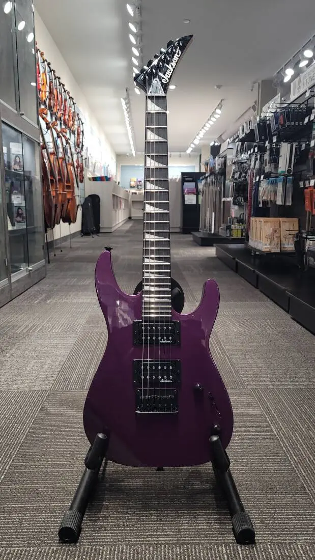 A minuscule axe with a monstrous bite, the Jackson JS Series Dinky Minion JS1X is ideal for aspiring little shredders or grownup road dogs who need an easy-traveling instrument loaded with all the features they love.