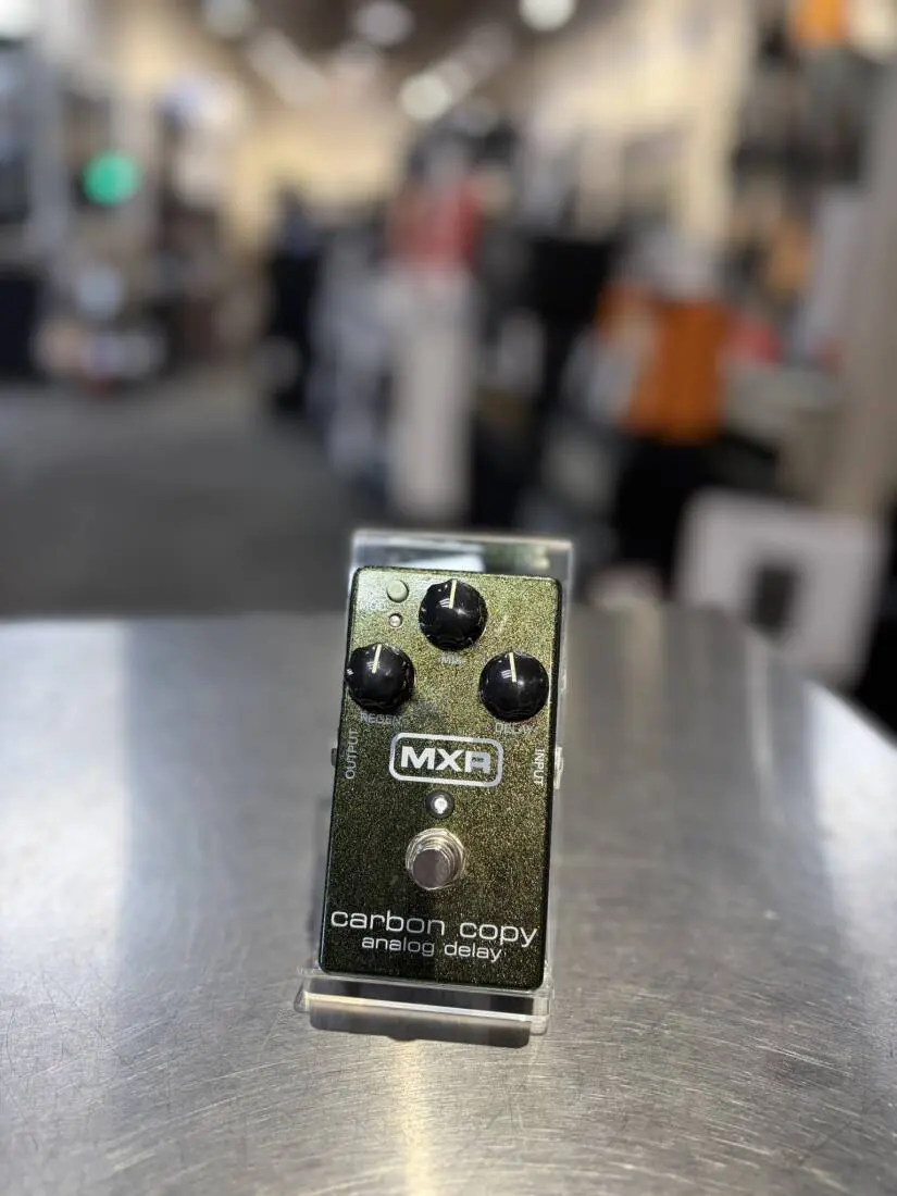 The MXR Carbon Copy Analog Delay Pedal features a completely analog audio path for the ultimate in rich, warm delay-made possible only by old-school bucket brigade technology. This design boasts an amazing 600ms of delay time with optional modulation via a top-mounted switch and a simple, three-knob layout that controls Delay time, Mix (dry/wet blend), and Regen (delay repeats)-all in a pedal no bigger than a Phase 90. In addition, the M169 pedal has two internal trim pots that offer user-adjustable width and rate control of the modulation for even more tonal options. The Carbon Copy effect pedal will take you from crisp "bathroom" slap echoes to epic, Gilmour-esque delays with a twist of a knob. True hard-wire bypass, single 9-volt operation, and stage-ready blue LEDs round out the package.