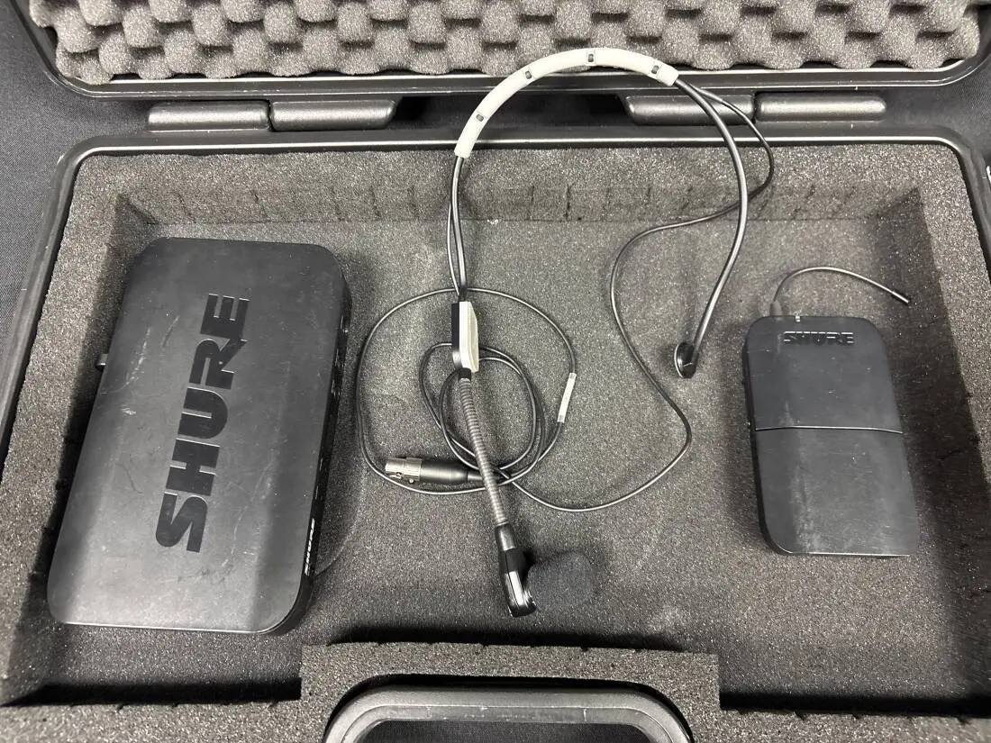 Includes BLX1 bodypack transmitter, BLX4 single-channel receiver, PGA31 headset microphone, power supply, 2 AA batteries, and user guide.