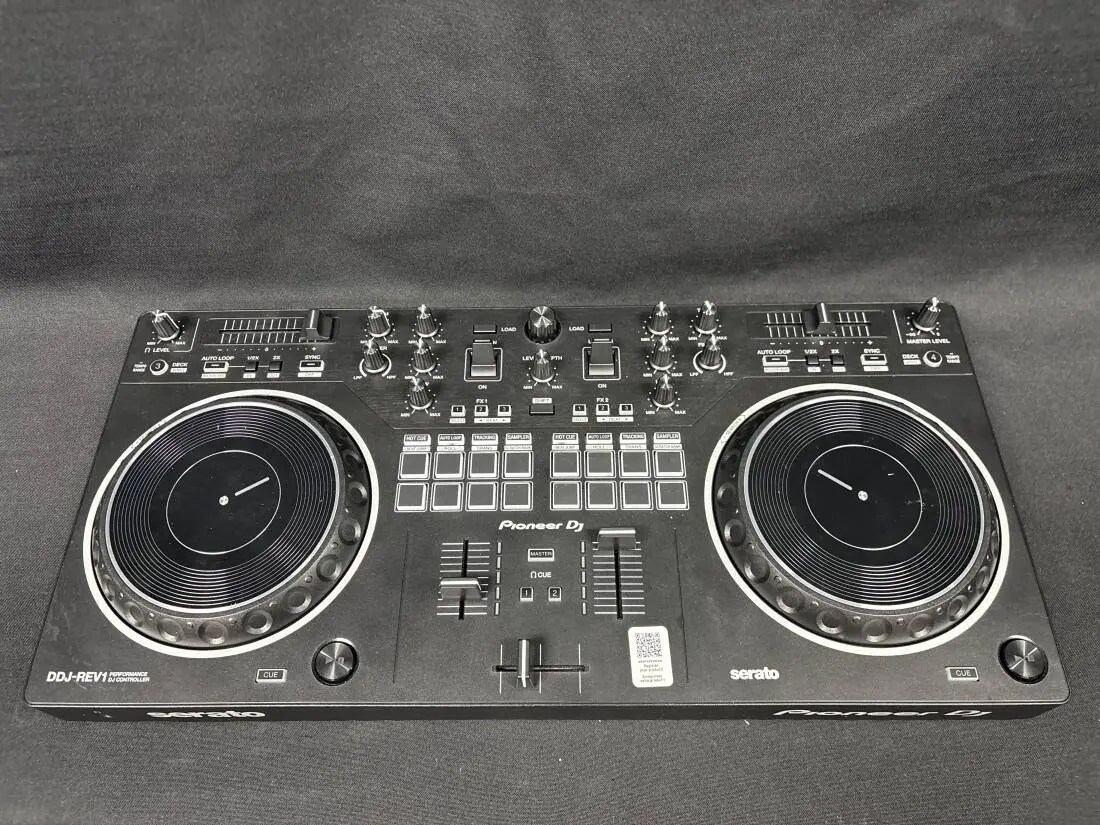 The DDJ‐REV1 is a 2‐channel Performance Controller that matches perfectly with the free Serato DJ Lite software and boasts a new, battle‐style layout that's easy to use and perfect for playing like a pro DJ. The performance pads have been placed in the mixer section along with Lever FX paddles, exactly where they're found on DJM‐S Series mixers, enabling players to energetically change the sound during performances.