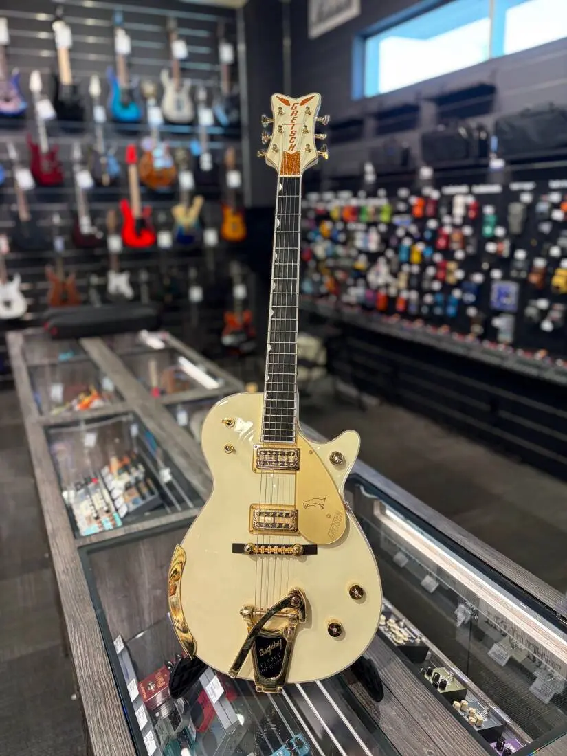 1958 saw Gretsch's venerable Penguin guitar decked out with a pair of Filter'Tron pickups, complementing the signature sound of its chambered mahogany body, which magnifies harmonic richness by letting air resonate between the top and body for livelier and more articulate tone. The dual TV Jones® Classic pickups on this gorgeous Antarctic baby in Vintage White replicate that unmistakable vintage Filter'Tron sound to fabulous sonic effect.