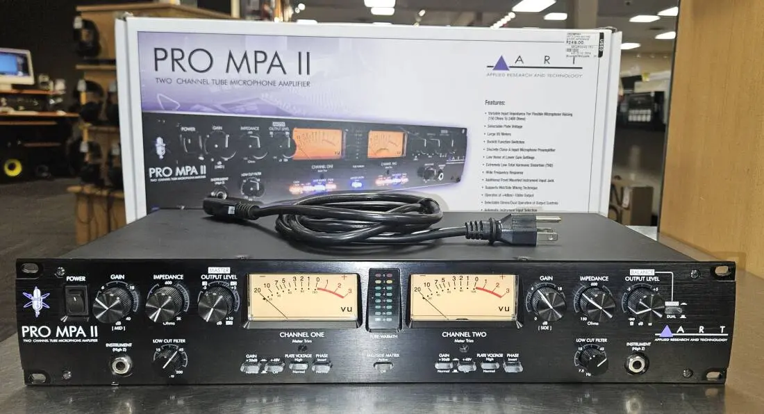 The new ART ProMPA II is the next generation in affordable high performance microphone preamp technology. Each microphone input circuit, with selectable 48v phantom power, features variable input impedance which can radically vary the overall performance of any high quality dynamic or ribbon microphone. The ProMPA II can be configured for dual mono or stereo operation with selectable mid/side mic support, summing the adjacent channel, to decode left/right signals.