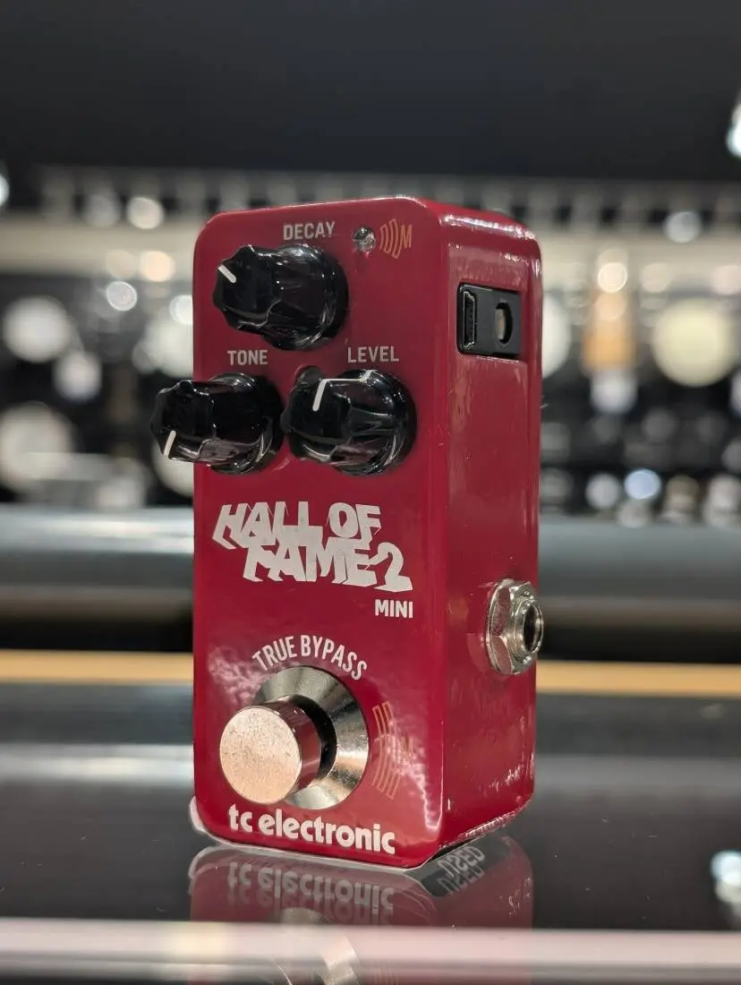 Continuing the series of legendary Hall of Fame pedals, the Hall of Fame 2 Mini Reverb pedal features an updated layout, letting you adjust Decay, Tone and Level all in an extremely compact footprint. Now you can choose between either a totally transparent buffered bypass to drive your precious tone through long cable runs or crowded signal chains or a squeaky clean true bypass, depending on your setup.