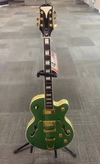 The next generation of "Kat" archtops featuring ProBucker™ FB720 mini humbuckers, the new UpTown Kat™ ES Collection is the next generation of Epiphones classic Kat archtop and features a true ES style semi-hollowbody archtop with newly designed Epiphone ProBucker™ FB720 mini humbuckers™, Graph Tech® nut, Ebony fingerboard, and Grover® Rotomatic tuners. Available in Sapphire Blue Metallic, Ruby Red Metallic, Emerald Green Metallic, and Topaz Gold Metallic.