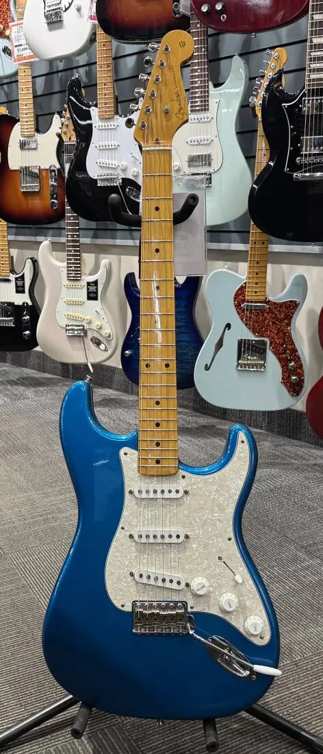 From Fender Japan, the ST57-70TX was the cream of the crop during the early 2000's as part of their "Vintage Premium" selection. Alder body, maple neck and fingerboard with a 7.25" radius, loaded with Texas Special pickups as stock. Hardware features include a diecast block bridge with Fender stamped saddles and Kluson style vintage tuners. A Fender hardshell case is also included!
