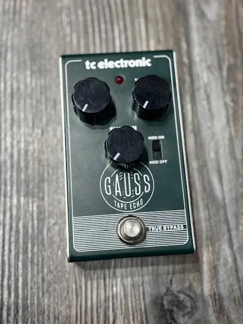 Gauss Tape Echo features a highly responsive and easy to use 3-knob interface with control over Delay Time, Sustain and Volume. An onboard Mod-switch lets you go squeaky clean, or add subtle and warm modulation to your echoes. Just as any good delay pedal, Gauss Tape Echo gives your tone a sense of space and substance by stretching it out a little bit, or a lot, and fattens up the sound by adding a distinct sense of "more". But it also gives you the sought-after timbre of the original tape echo machines complete with wow and flutter effects, and natural bass attenuation on the repeats.