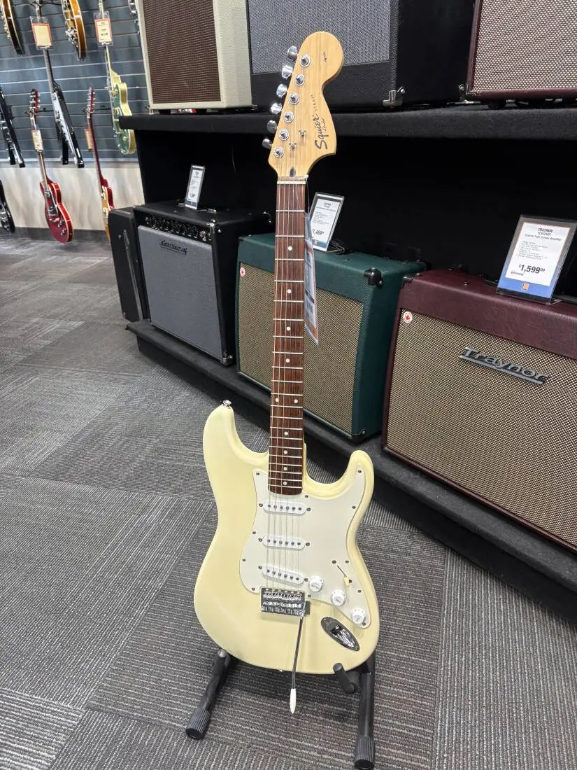 A superb gateway into the time-honoured Fender® family, the Squier® Affinity Series™ Stratocaster® delivers legendary design and quintessential tone for today's aspiring guitar hero. This Strat® features several player-friendly refinements such as a thin and lightweight body, a slim and comfortable "C"-shaped neck profile, a 2-point tremolo bridge for superior tremolo action and sealed die-cast tuning machines with split shafts for smooth, accurate tuning and easy restringing. Loaded with a trio of Squier single-coil Strat pickups with 5-way switching for genre-defying sonic variety, this model is ready to accompany any player at any stage.