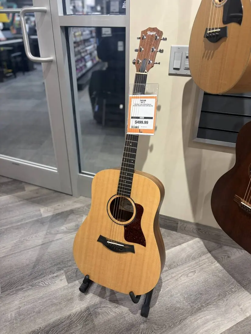 The Big Baby Taylor has long been a popular choice for new learners and experienced players alike thanks to its combination of punchy tone and portability. A slightly scaled-down Dreadnought body with a narrower depth provides an accommodating feel whether you play seated or standing, and the slender neck offers comfortable fretting regardless of your skill level. With a solid spruce top for projection and built-in electronics with a digital tuner, the Big Baby Taylor is a great option for practice, travel, lessons and more. It ships with a lightweight gig bag.