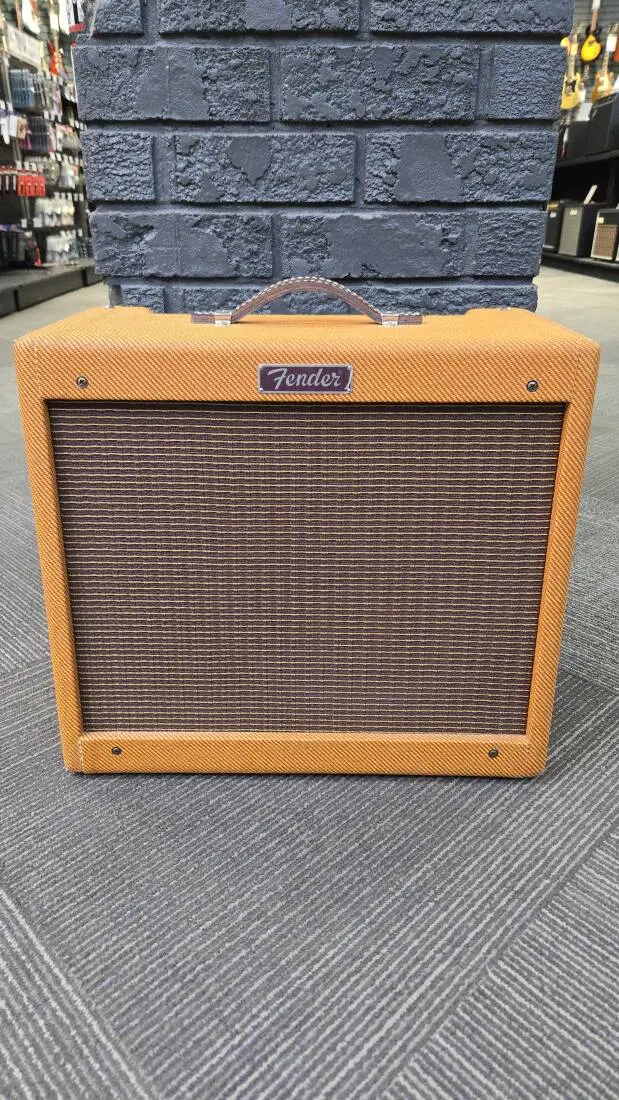 The Blues Jr. LTD takes Fender's 15W gem and gives it the true vintage treatment with a lacquered tweed covering and a vintage-voiced 12" Jensen speaker. Its golden tones are generated by an all-tube signal path using a pair of EL84 output tubes and three 12AX7 preamp tubes. Add renowned Fender reverb, flexible controls, FAT switch for mid boost, and you're in business. And just look at that chrome panel, that tweed finish with pinstripe grille cloth, and those vintage pointer knobs!
