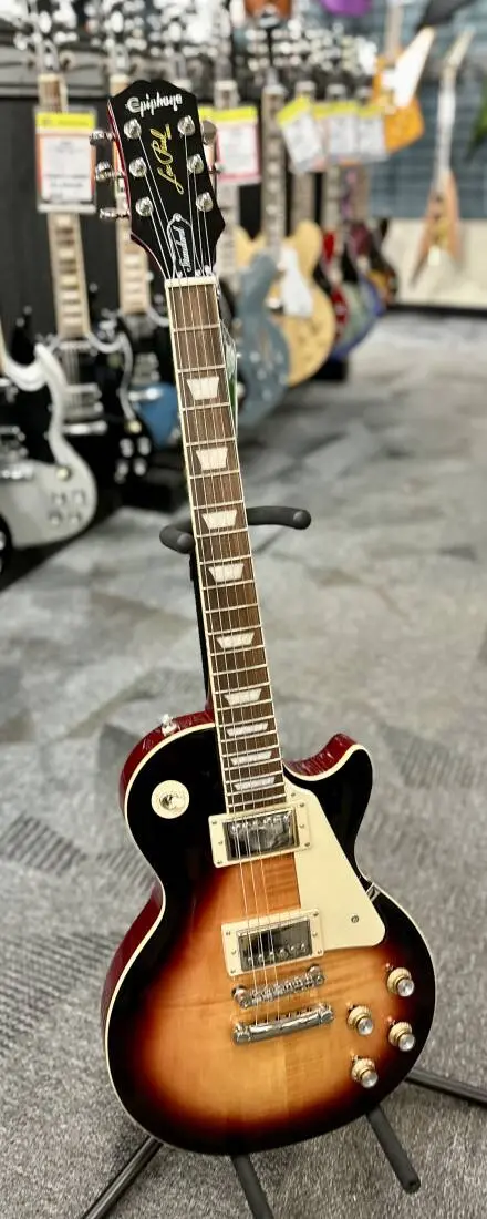 The Les Paul Standard 60s models from Epiphone's new Inspired by Gibson Collection recreate the sound of 1960s era Les Pauls. Featuring a classic Mahogany body with a Maple cap, Grover® tuners, and powered by ProBucker™ humbuckers with CTS electronics.