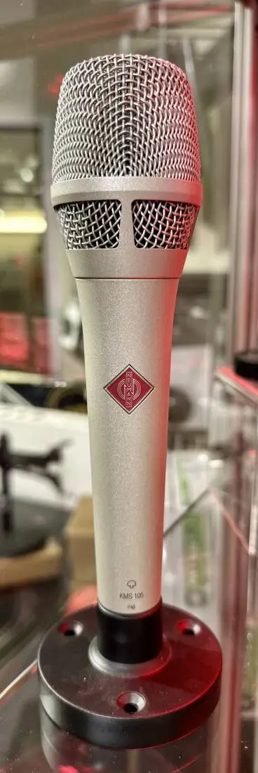 The KMS 105 is an excellent vocal microphone that truly gives the Neumann Sound on stage. It excels as a live and studio microphone for speech, acoustic-stringed instruments and brass. Very high SPL capabilities, low handling noise, tight polar pattern, excellent feedback rejection, and uncolored off-axis response make this a professional choice that is easy to use and a pleasure to record with.