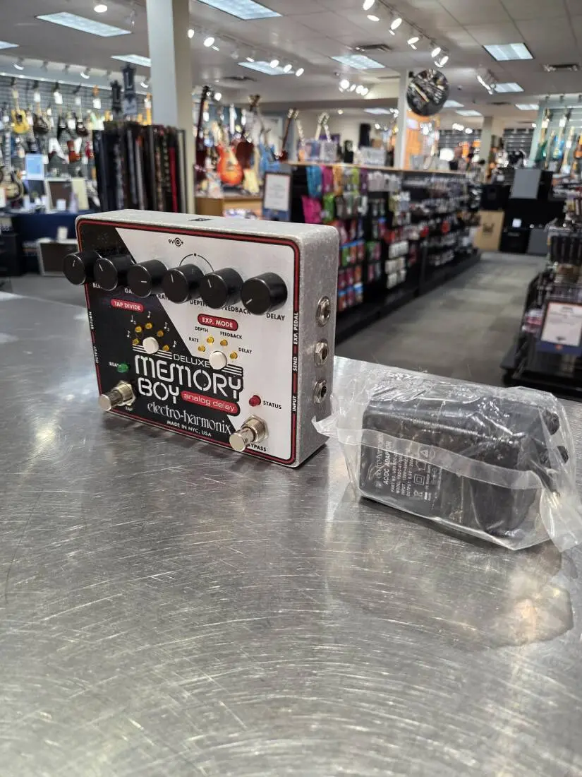 The Deluxe Memory Boy is a delay from the Memory Man family. Quality IC's deliver warm and organic analog tones while "tap tempo" allows you to always be in sync with the groove. Choose five note divisions for metronomic variances. Sweet modulations can be set while the expression pedal input gives you external control. The Deluxe Memory Boy is the most flexible analog delay ever designed.