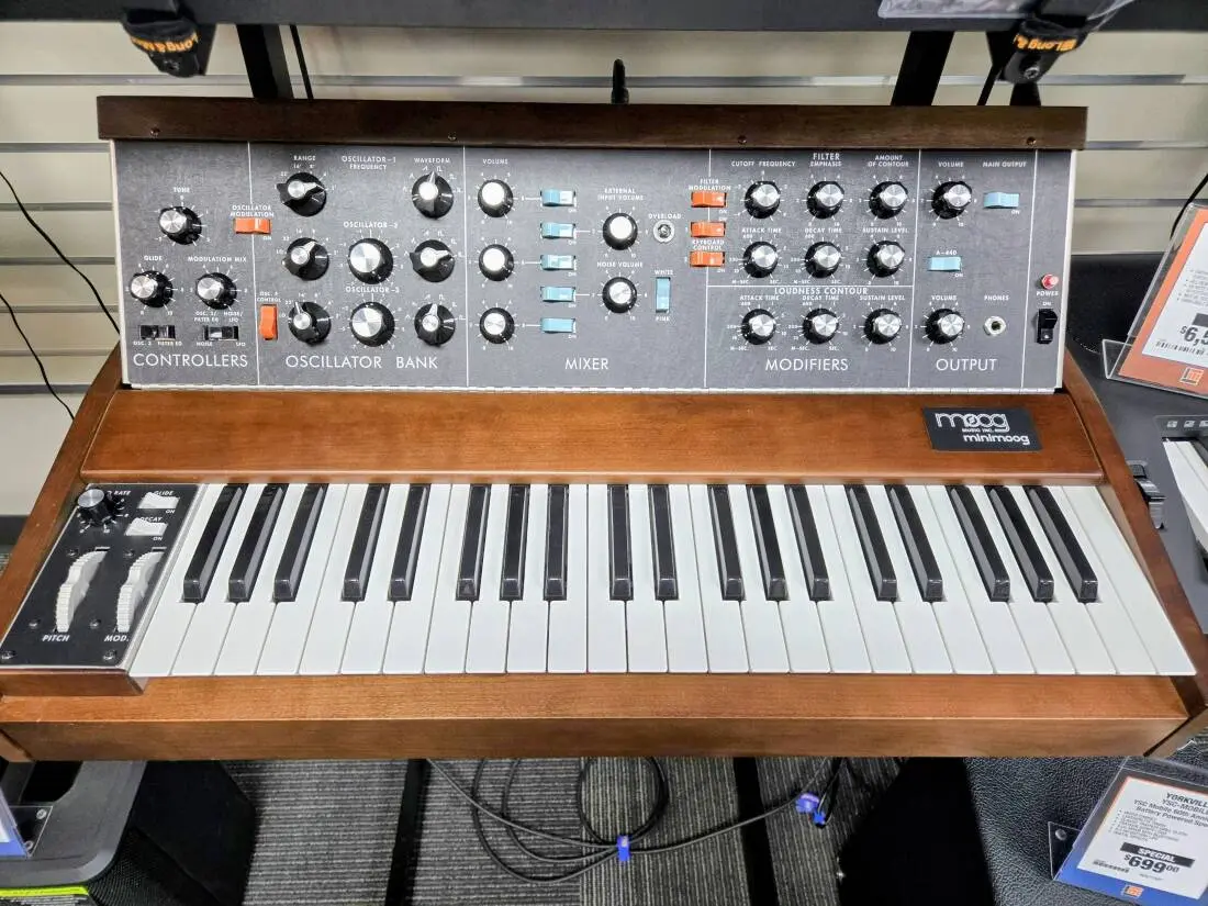 Built to last a lifetime, each new Minimoog Model D delivers the revered quality, undefinable feel, and authentic sound of a pristine vintage Moog. This reissue features the identical sound engine and signal path of the 1970s Model D plus a series of popular modifications.