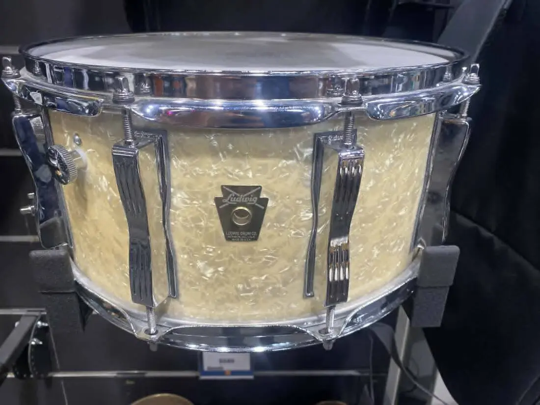 The Long & McQuade 60th Anniversary Classic Snare is constructed of 6-ply maple with vintage throw off and internal muffler. Finished in White Marine Pearl. Limited edition - only 30 available.
