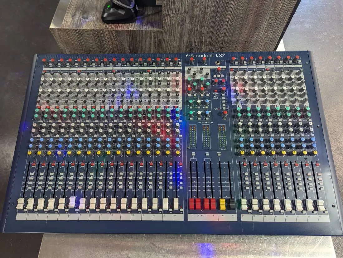 Inputs and Outputs The LX7II includes frame sizes up to 32 mono inputs and four stereo inputs/returns with four groups, main stereo output and a dedicated mono output for centre clusters. There are direct outputs on the first 16 inputs suitable for multitrack recording, and six auxes for flexibility, effects and foldback. The LX7II mixes to seven outputsfour subgroups, plus the main Left, Right and Centre (Mono) mix outputs.Equipped with the G30 Series Electronically, the LX7II includes a Soundcraft GB30 Series mic-preamp and EQ section, both designed by Soundcraft founder Graham Blyth. The 4-band EQ features swept mid sections and is modeled after the highly-acclaimed EQ in the MH3 and MH4.