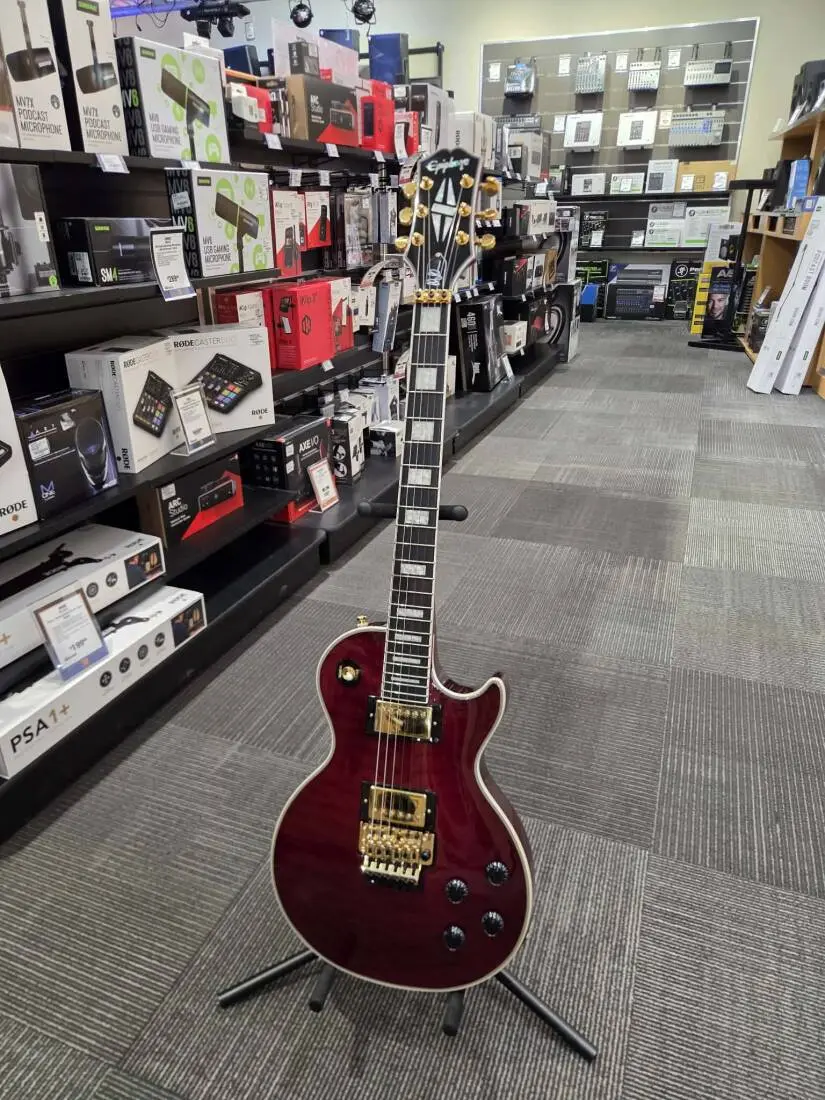 Created through extensive work with Alex Lifeson and Gibson, Epiphone's Alex Lifeson Les Paul Custom Axcess similarly redefines the boundaries of the classic Les Paul in an accessible, versatile package. This guitar carries all of the traditional tones that have made the Les Paul legendary, along with unprecedented levels of sonic and performance agility. The Alex Lifeson Les Paul Custom Axcess Standard carries powerful Epiphone Ceramic Pro neck and Pro Bucker 3 bridge pickups with push/pull coil splitting on the volume controls, along with a Floyd Rose 1000 Series tremolo - the world's most efficient vibrato. Along with all this, the Alex Lifeson Les Paul Custom Axcess still presents that timeless Les Paul look that has remained a classic for more than 60 years. Hardshell case included.