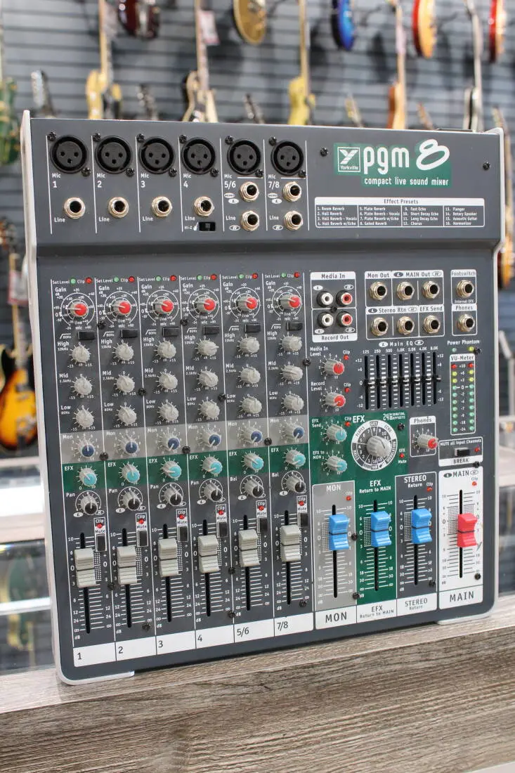 The Yorkville PGM8 delivers all of the essential features needed in a professional mixer in a convenient, ultra-compact package. High quality 60mm faders throughout, effective fully featured input channel design, 24-bit digital effects, and break switch make the PGM8 the perfect mixer for live music applications and for small installs.