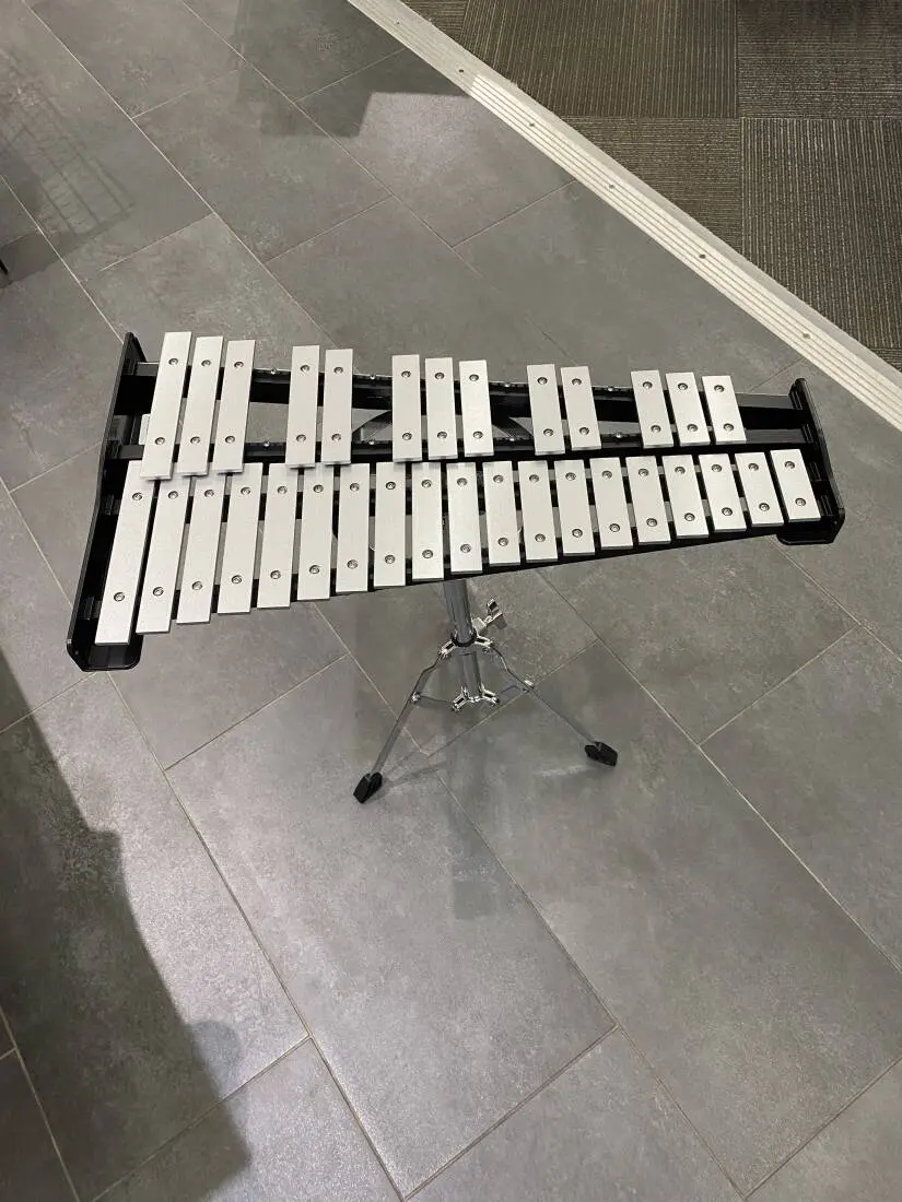 Backpack Percussion Kit, 2.5 octave 32-note keyboard (F5-C8) with Silver Sparkle front rail, 1 wide tone bars, removable music rack, Innovative Percussion F12 IP-HB sticks and mallets, practice pad, adjustable stand