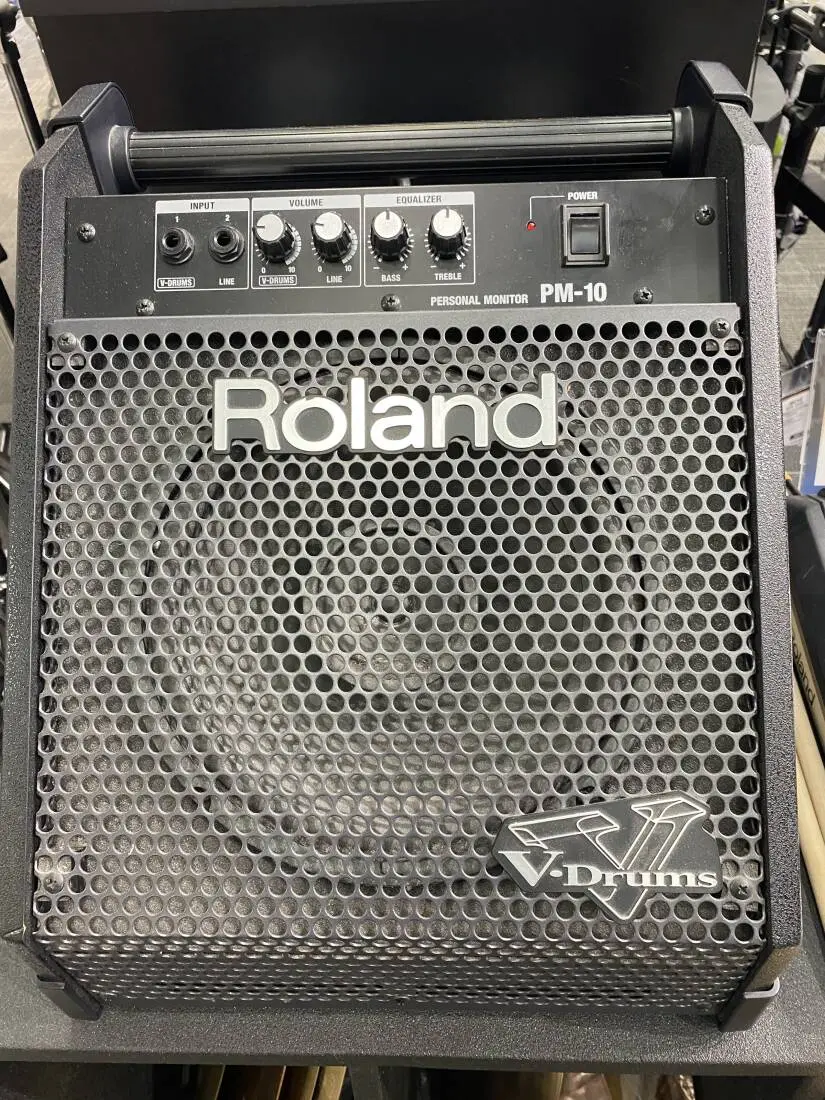 Designed as a portable companion for Rolands V-Drums, the new PM-10 is equipped with a 30-watt amplifier and a 10" 2-way coaxial speaker. Its compact design is perfect for small-sized drum kits, such as the TD-3Kit and the TD-6KV. Jam along with your favorite songs by connecting an external CD or MP3 player to the Line In jack. Balance the V-Drums and the external audio with the dedicated volume controls; adjust the tone with the built-in 2-band EQ.