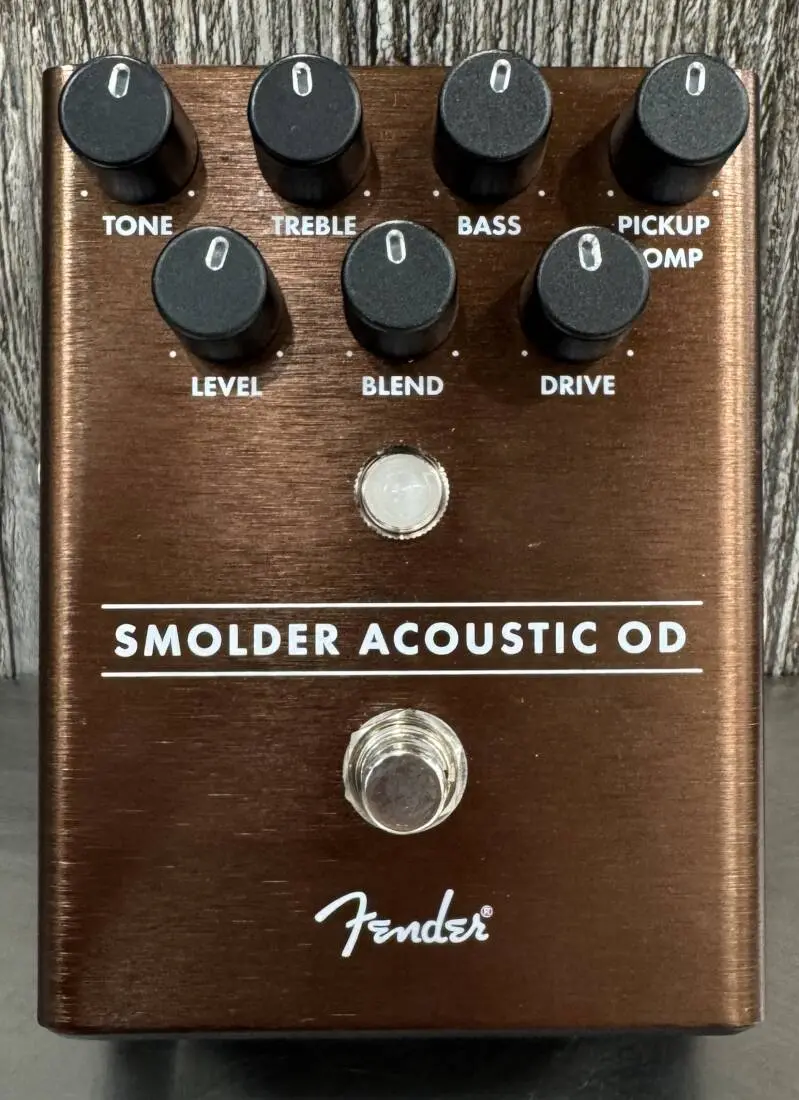 Its tough to add overdrive to acoustic guitarsnot only can it sound un-musical, it can also cause tone-destroying feedback. Designed specifically for use with acoustic instruments, the all-analog Smolder Acoustic Overdrive elegantly solves these issues with Fender know-how. To soften the bright attack of a piezo pickup we included a Pickup Compensation control that smooths out the highs. The Drive knob controls the amount of distortion, while 3-band EQ and Filter controls let you shape your sound to taste. We even included cabinet simulation to add some flavor when plugged into a full-range acoustic amp or PA.