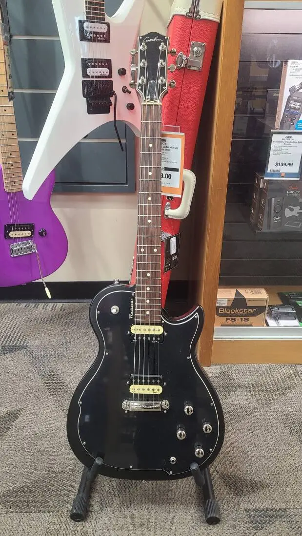 Your blues and rock licks will radiate like never before on the latest rendition of the Godin Radiator! Like its predecessor, originality, tone, and playability make up the main aspects of this Radiator reissue, along with a modernised design. The matching pickguard and headstock set the tone with their eye-catching looks, while string bends come to life thanks to the comfy short-scale Silver Leaf Maple Neck. Loaded with a pair of Custom Godin Humbuckers and twin volume and tone controls, the Radiator will surely unleash your most rocking riffs!