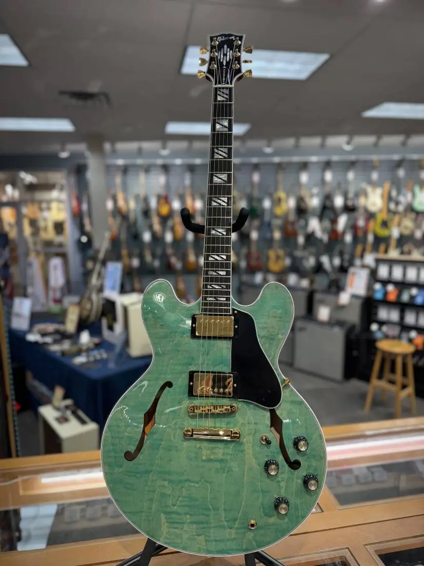 The Gibson ES-335 has always been known as an exceptionally versatile guitar. Regardless of your stylistic preferences or what the gig calls for, it can cover it with aplomb. The ES Supreme expands on that legendary versatility and adds features that take the ES™ to new heights of beauty, including a 3-ply body with a AAA figured maple top, Super Split Block mother-of-pearl neck inlays, gold hardware, and a striking new mother-of-pearl headstock inlay inspired by a design from the 1940s that was discovered in the Gibson archives. Smooth playability is ensured by the mahogany neck with its Rounded C profile and compound radius ebony fretboard, while the famous ES sonic versatility is enhanced even further with the addition of push/pull volume pots for coil tapping the Burstbucker™ Rhythm Pro and Burstbucker Lead Pro + pickups. It all comes together to make this the ES that reigns supreme. A hardshell case is also included.